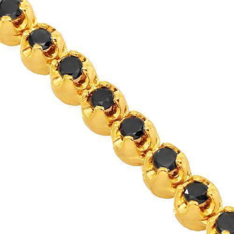 14k Yellow Gold Mens Black Diamond Tennis Chain 4 mm